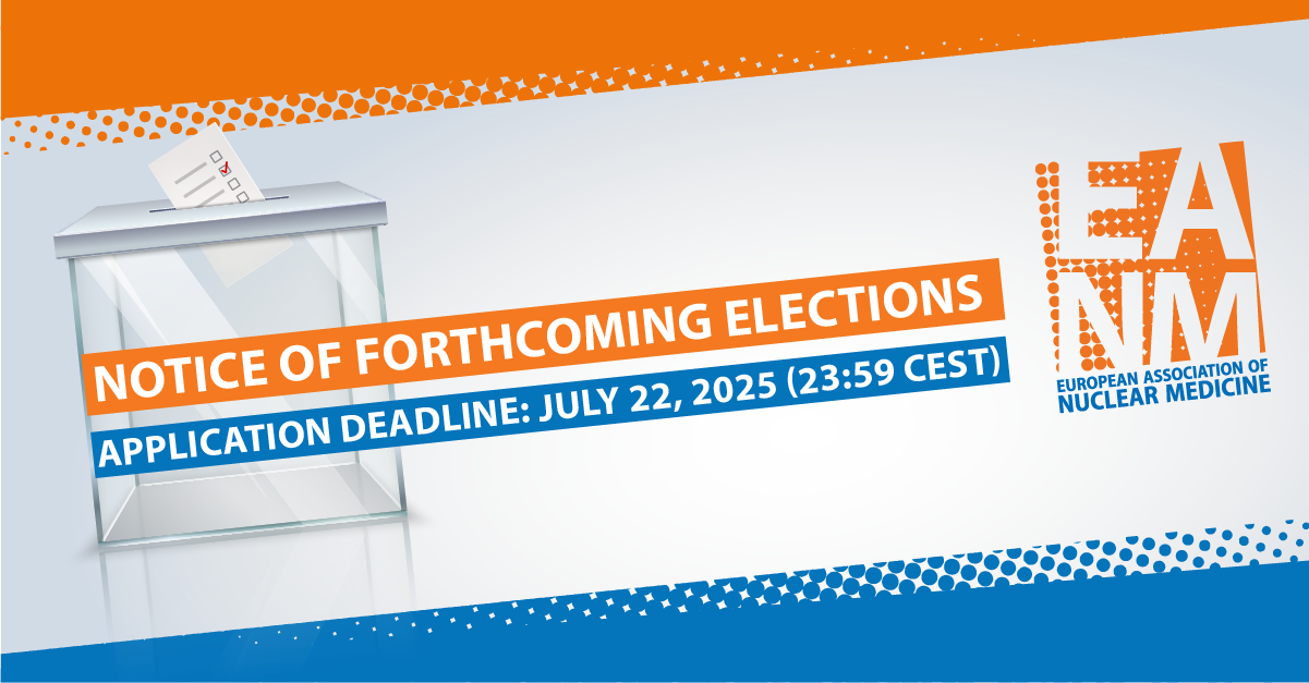 In accordance with § 14.7. of the EANM Statutes, the EANM Board would like to announce that the following EANM Board position is open for election this year: EANM Secretary/Treasurer 2026–2027.